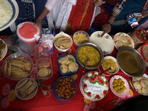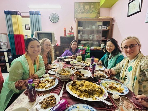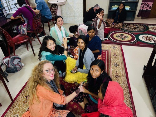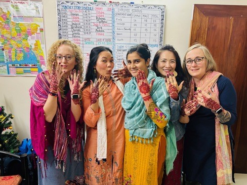 In the afternoon, we spent time at the College Dorm practicing computer skills in their new lab, playing board games, and enjoying henna art. In the evening, we were invited to our friend's house for dinner. The night was filled with delicious food, desserts, and heartfelt conversations, making it a truly wonderful way to reconnect and share updates about our lives.