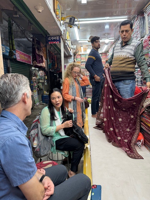 The team had a full and rewarding day that began with an early morning soccer game with the girls. Brittany impressed everyone on the field, and the girls sweetly gave each of us Bangladeshi nicknames: Stephanie became "Sri" (beauty), Brittany "Kota" (knockout), Ivy "Shova" (elegance), Fran "Koli" (flower bud), and Dave "Tall" (greater than average height). After soccer, a good friend Stephanie and Fran met last year took us shopping.