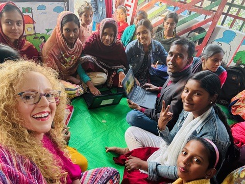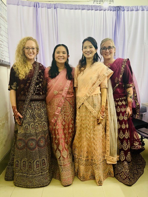 In the afternoon, we traveled to Shovna village to introduce the girls to Chromebooks, many of whom were seeing a computer for the first time. Stephanie found a fun typing program that would help them learn the basics of typing while tracking their progress. Each team member taught a small group of girls. After a heartfelt farewell in Shovna village, we returned to the dorms for a grand farewell party. Everyone was dressed in their finest traditional attire—Punjabi, Saree, and salwar kameez—while Stephanie, Fran, Ivy and I wore beautiful lehengas. The girls were thrilled to see us in our dresses. The celebration was filled with songs, traditional dances, speeches of gratitude, and ended with a lively group dance party (my favorite part). After lots of pictures and selfies, we had a wonderful dinner, as always prepared by the incredible cooks at the GEP, who are accustomed to preparing meals for over 107 people!! We left feeling deeply honored and extremely loved.