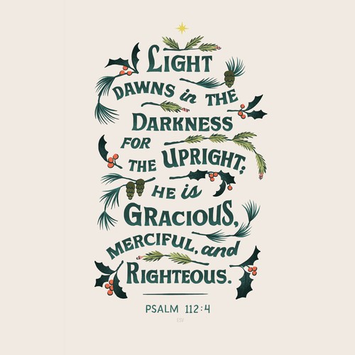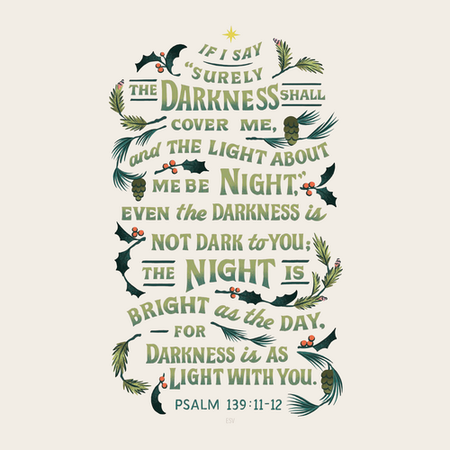 Of course, this is predawn, when everything appears darker and quieter than at any other time of the day. I settle into a room we call the library and gaze through the glass window- pane as the first hints of light declare morning’s arrival. Although my eyes are tired and dull, my mind happens to be as alert as ever. As I sit before the Lord in stillness, he pro- vides me with a much-needed remembrance at Christmastime: My story is not always what it seems. It appears darker and quieter at times. It feels lost in a forest of shadows and obscured images. What I’m learning is that these are the predawn moments of my life. Advent has a way of reminding us of this dark but divine truth every year. During the dimmest hours of the night, we are moments away from the morning light—a light that never fails to arrive and welcome us into God’s evergreen mercies.
