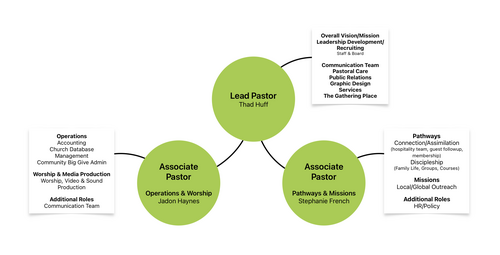 Therefore, we will be shifting some of the responsibilities that have been on Jadon's plate to Stephanie French and shifting more hours to Stephanie, bringing her to full-time. Jadon’s pastoral role now shifts from Executive Pastor to Associate Pastor (Operations & Worship) and Stephanie’s will continue to be Associate Pastor, but with the clarity of (Pathways & Missions).