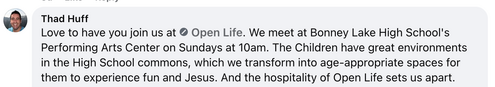While the pastors could troll these sites and make sure to comment that Open Life is a great church that they should consider, it is so much more powerful for a person who attends to share their story and an invitation. And the more people from the church who comment on a post the more likely someone will add Open Life to their list of churches to check out. In fact, this past Sunday a new family made their way to Open Life because of a social post and those who recommended they come to Open Life. So proud of the handful of people who have already been commenting on these posts.