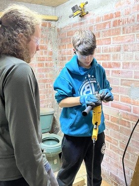 While Stephanie was working with the women, Nathan and Henry started a building project to add a dividing wall to a bathroom. They made a great start and should finish before lunch tomorrow.