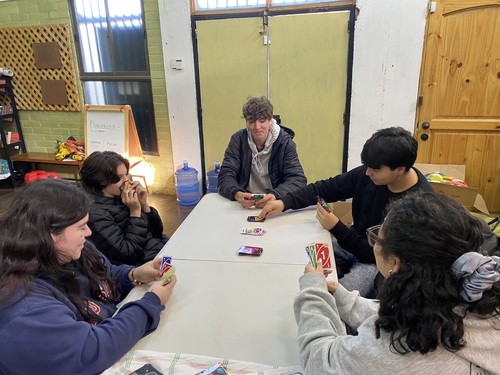 Yesterday was a day for rest. After a sleep in we all attended church at La Farfana during which we all participated in the message by creating the armor of God in groups. After church we went to the Pilcoles for pizza and games. Dani and Stephanie braved IKEA on a Sunday (yikes!) to purchase needed items for this week while all the guys played games. They have a new favorite. The next two days we will be painting and organizing at the church. Pray we are able to complete our projects in time for our final free day Wednesday.