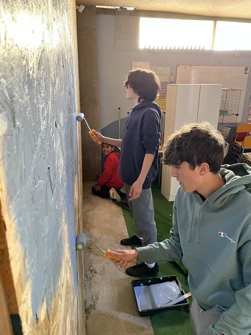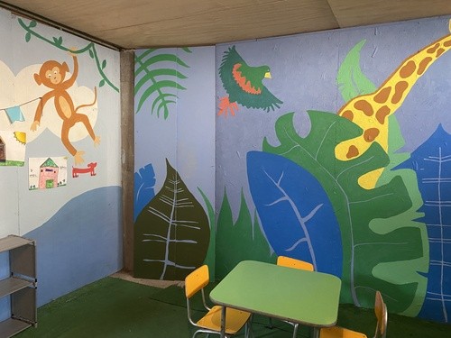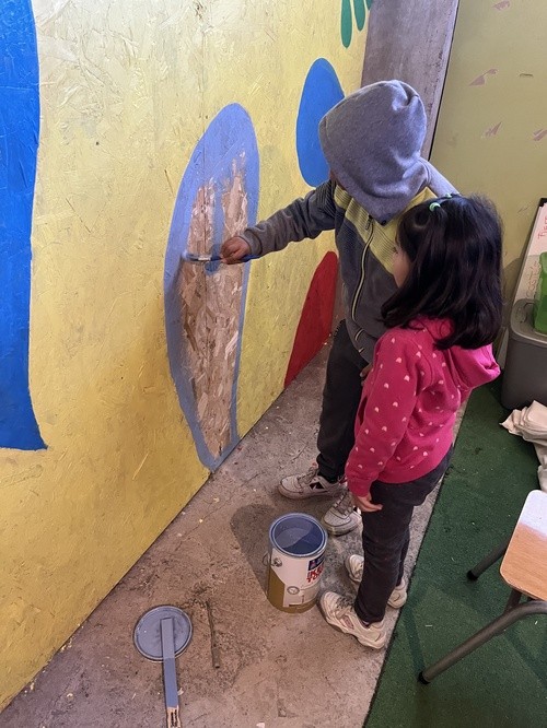 Our last work day was spent painting, building and organizing. Owen’s height came in handy to reach the tallest walls; Stephanie, Nathan and I finished painting murals; Henry assembled IKEA storage units and Greg and Charlie installed shelving in the kitchen for much needed storage. What would normally take Greg a a few minutes, took much longer... drilling into brick was tricky work!