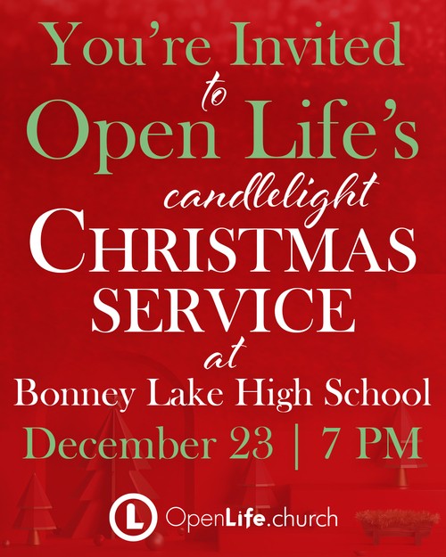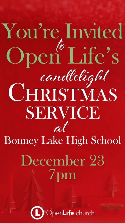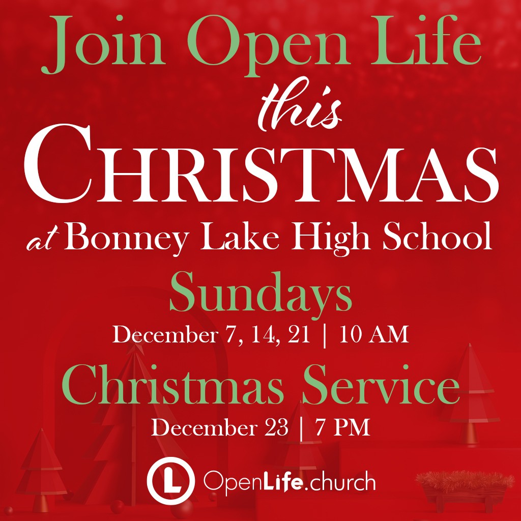 "If you are looking for a great place to celebrate Christmas, I want to invite you to join me and some of the most amazing people in our community at Open Life Church. CHRISTMAS SERVICE | 7pm at Bonney Lake High School. Trust me, you will love the music, candlelight vibe, photo booth, hot cocoa bar... Find out more about Christmas at Open Life here: https://openlife.church/christmasatol @openlifechurch"