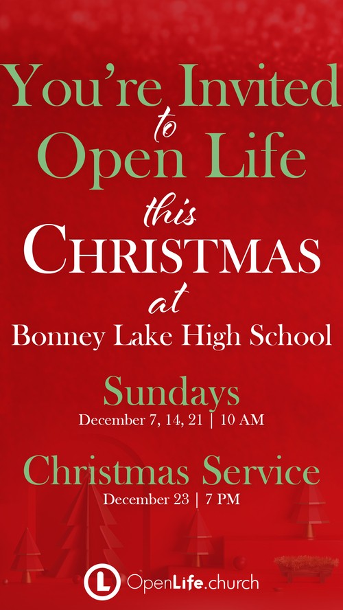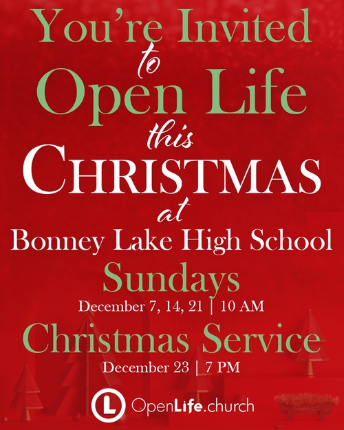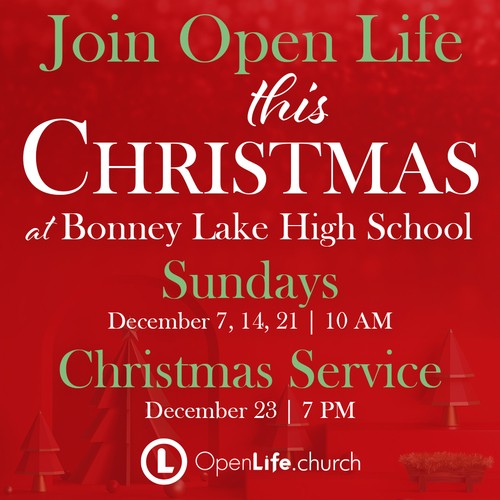 "If you are looking for a great place to celebrate Christmas, I want to invite you to join me and some of the most amazing people in our community at Open Life Church. SUNDAYS | 10am at Bonney Lake High School and our CHRISTMAS SERVICE | 7pm at BLHS. Trust me, you will love it. Find out more about Christmas at Open Life here https://openlife.church/christmasatol @openlifechurch"